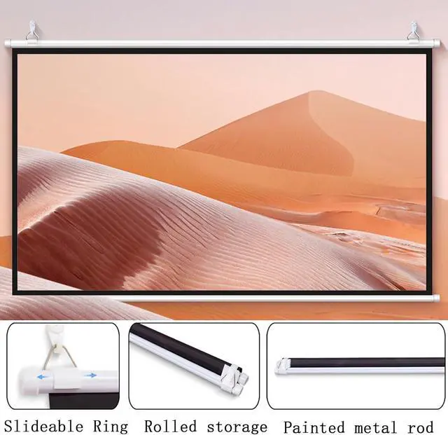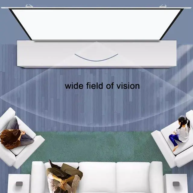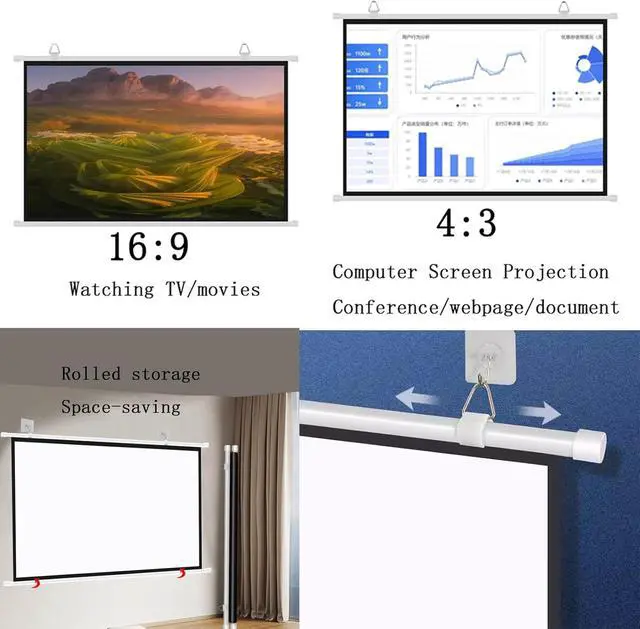 The screen has two ratios: 16:9 and 4:3. The 16:9 ratio is suitable for home theaters, games, and KTVs, and the 4:3 ratio is suitable for workplaces such as business, offices, schools, and educational PPT.