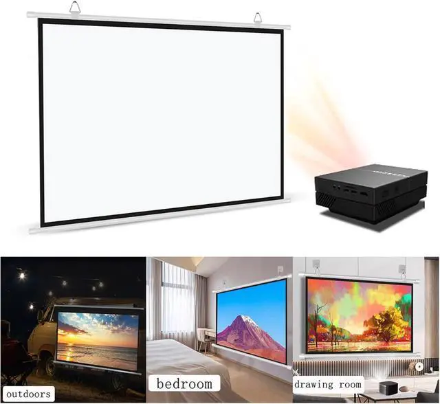 The wall-mounted projection screen is made of high-quality white fiberglass curtain, which is dust-proof, flat, durable and not easy to wrinkle. The black frame design can not only set off the picture, but also enhance the contrast of the overall picture.