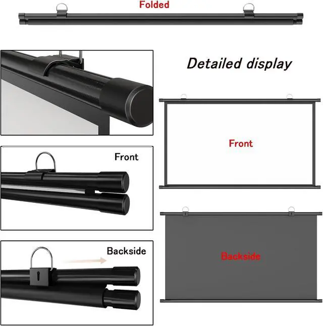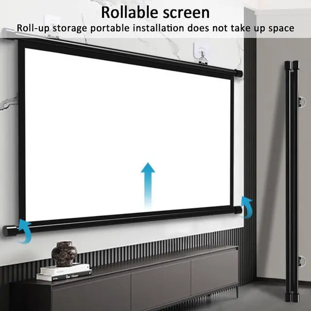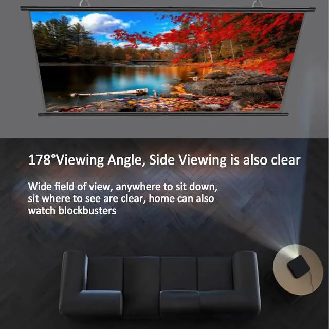 Manually pull down the projection screen and the 178° ultra-wide viewing angle allows you to invite your family, friends and neighbours to watch movies, play games and more. You can choose your favourite position to watch movies without crowding. Can be hung/mounted on the wall or ceiling, two installation methods can meet your needs, keep the screen stable and provide a better viewing experience.
