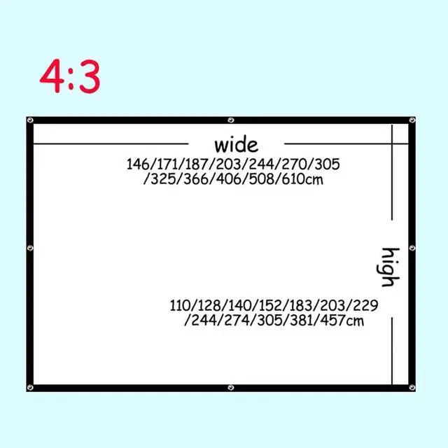 Size: 72 inches, 84 inches, 92 inches, 100 inches, 120 inches, 133 inches, 150 inches, 160 inches, 180 inches, 200 inches