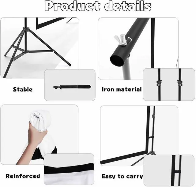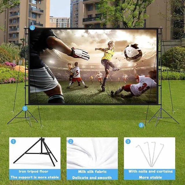 Stable StructureThe projector screen tripod can be extended, folded and adjusted, and the upgraded projection screen ensures a good viewing experience even in windy conditions.