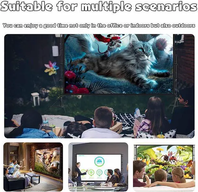 Wide ApplicationThe portable projector screen is suitable for home theater movies, education, presentations, squares, exhibitions, outdoor, offices, classrooms, games and other indoor activities, as well as outdoor use. If there are slight wrinkles during transportation, they will disappear automatically within a few days after installation.