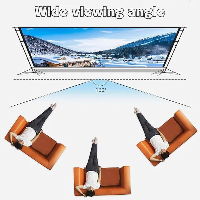 160° Wide Viewing AngleThe outdoor projector screen has a 160° viewing angle, maintaining a uniform reflection of the screen source video, allowing you to enjoy movies and games with many family members and friends at the same time.