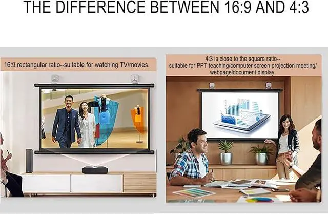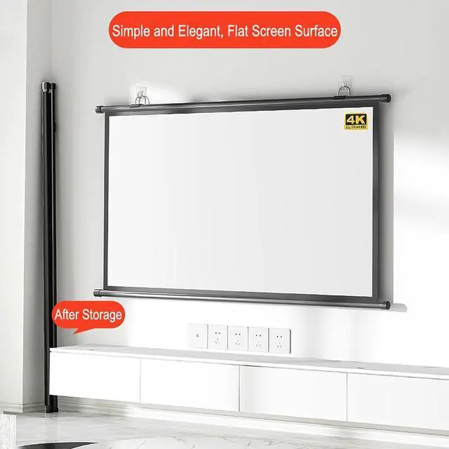 60/72-inch projector screen: The 60/72-inch large screen can match the proportions of most movies. The image quality depends on the video projector you use. If you use a projector, our screen can provide you with high-definition picture quality. With our projection screen, you can better enjoy movies, TV shows or games.