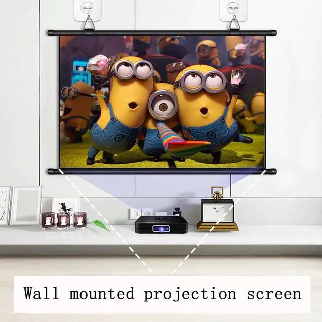 The wall-mounted projection screen can be installed on the wall with adhesive hooks/seamless nails, and the spacing can be freely adjusted as needed by moving the hanging ring left or right, giving you the flexibility to choose the ideal setting that suits you.