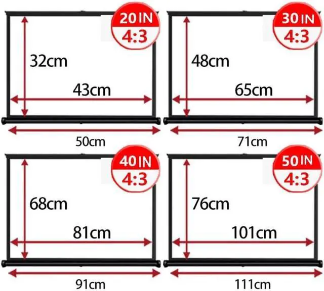 Welcome to my shop!If you need other styles, please come to our store to choose.product descriptionName: Wall-Mounted Hanging Projector ScreenScreen material: HD white glass fiber materialCoating: HD coating, imaging photosensitive layer, anti-wrinkle waterproof layer, PVC layerProduct size: 20inch, 30inch , 40inch , 50inch Aspect ratio: 4:3 16:9Tips: Due to the difference in light and screen, the item's color may be slightly different from the pictures. Please allow 1-2cm differences due to manual measurement. If you have any questions, please contact us in time, we will try our best to solve it for you within 24 hours!