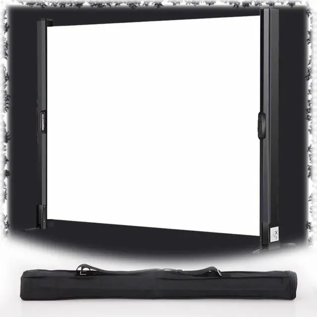 Retractable projection screen with an automatic lock helps you easily open and close this screen, the stand can be folded to make the entire screen compact, and comes with a handle for easy carrying.