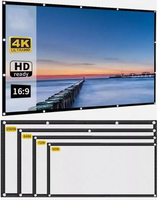 The projector screen has wide viewing angles and large size, which means you don't need to sit directly in front of the screen, just choose the most comfortable viewing position and enjoy a great movie night.