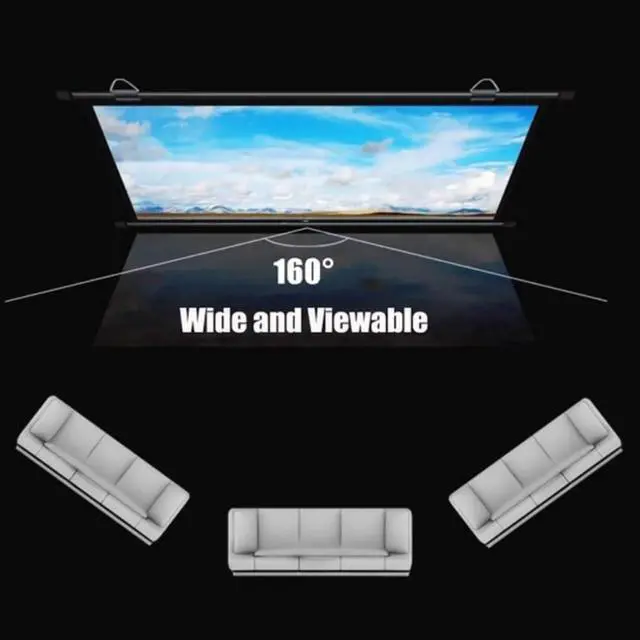 Wide viewing angles, the mini projector screen has a wide viewing angle of up to 160°, no need to sit directly in front of the screen, just choose the most comfortable viewing position and enjoy a wonderful movie night.