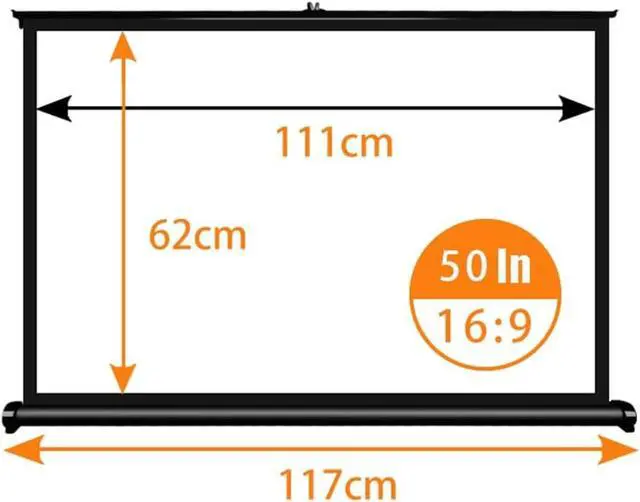20 inches/30 inches/40 inches/50 inches projection screen, provides 16:9/4:3 aspect ratio, can be used in different scenes. Lightweight and portable, it can be easily rolled up manually for storage or traveling with it.