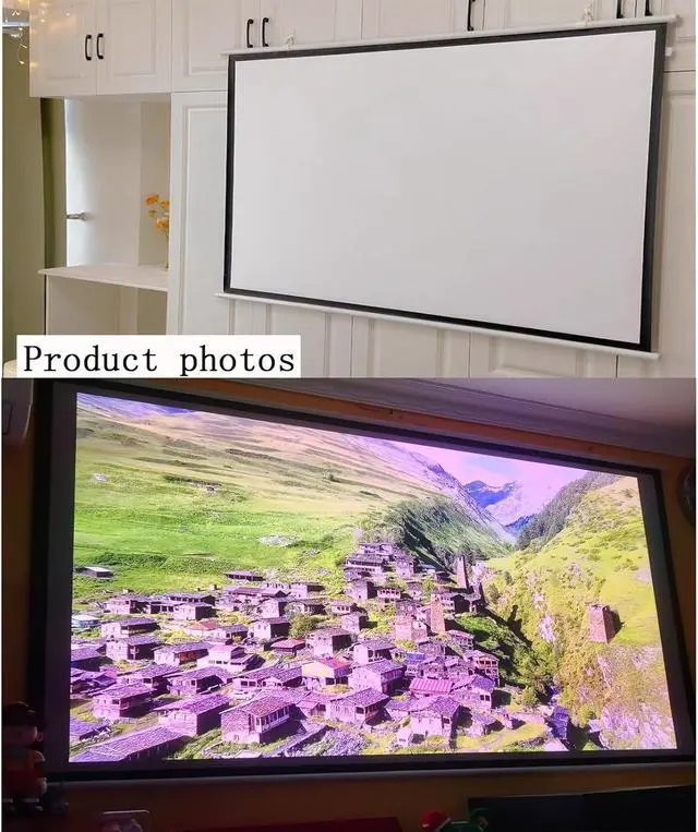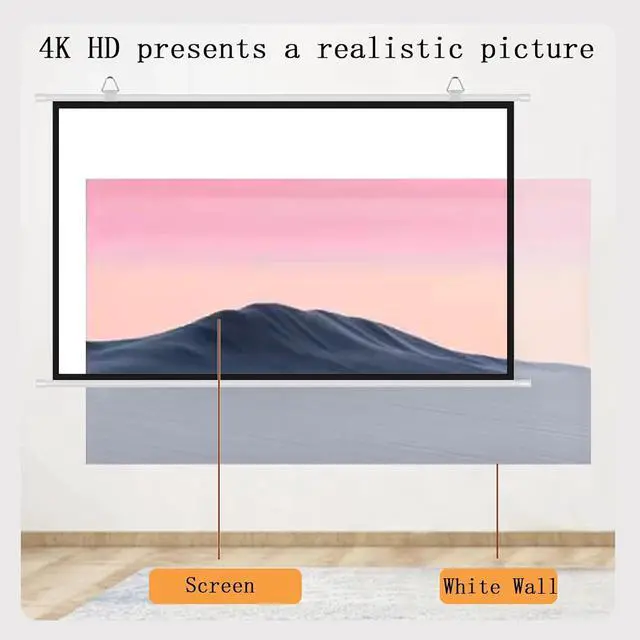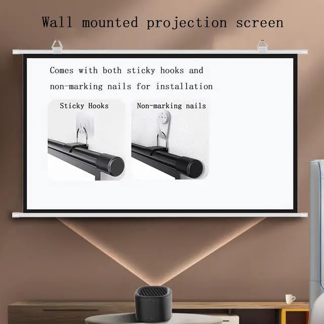 The wrinkle-resistant movie screen can be mounted on the wall and can be freely adjusted as needed by moving the hanging ring left or right, giving you the flexibility to choose the ideal setup for you.