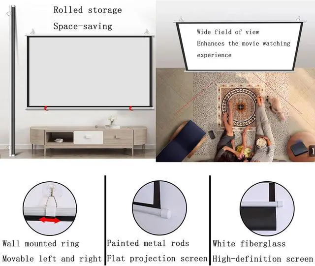 The portable projection screen is convenient and lightweight and can be easily rolled up to save space. Ideal for indoor, outdoor and travel use. The scroll design is convenient for people to carry when going out.