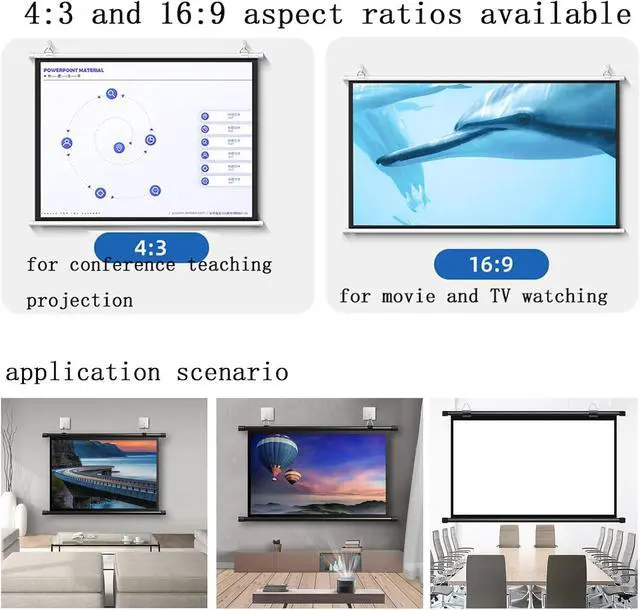 The projection screen has two screen formats, 16:9 is suitable for home theaters, playing games, KTV, and 4:3 is suitable for business offices, school teaching demonstrations, etc.