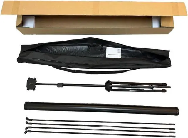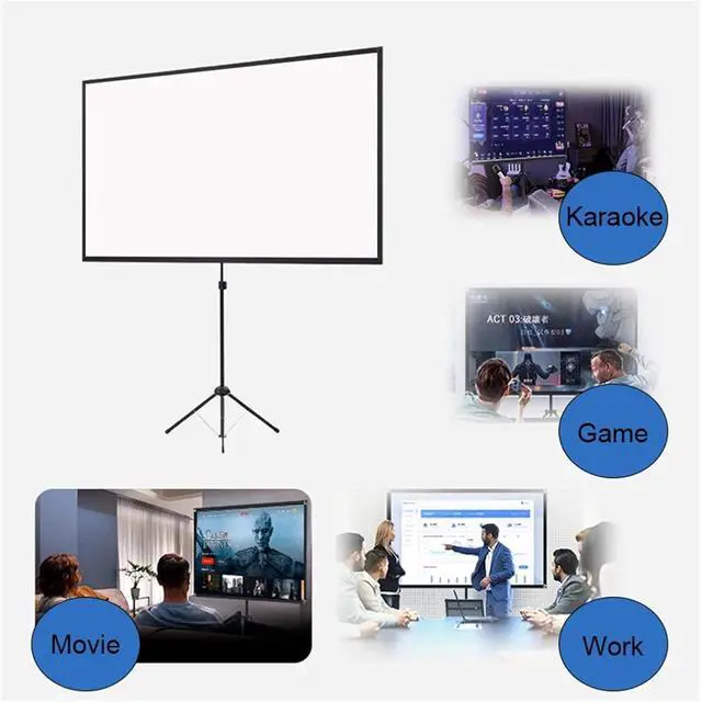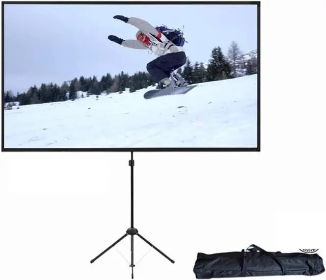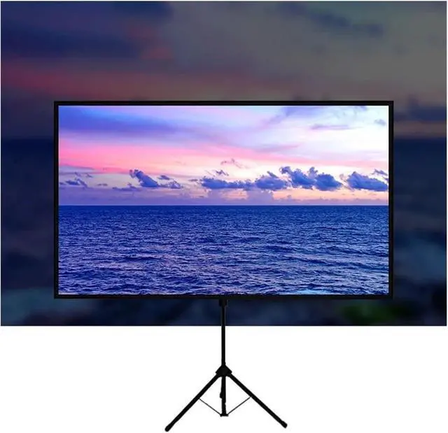This portable mobile stand projection screen is easy to install, and the fast and smooth operation provides ultimate convenience. A tripod-style stand is used to stabilize the screen, and the height can be adjusted at will. In addition to that, the screen is kept flat all the time by the and powerful "X-shaped" tension structure and leather stabilizing fit.