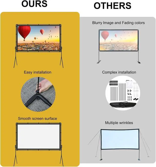Wide Compatibility: Our support outdoor screen is compatible with a wide range of projectors, making it suitable for both personal and professional use. Whether you are hosting a backyard movie night or delivering a presentation, this screen will meet your needs