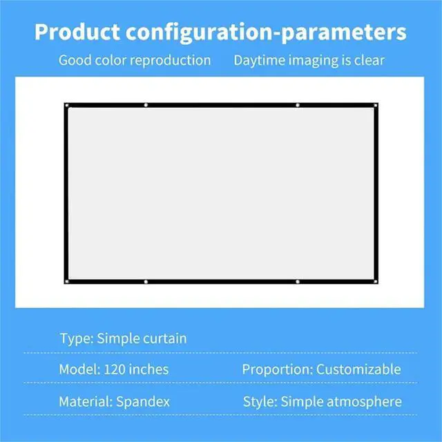 Projector Screen Screen Projection Screen Portable Simple Curtain Anti-Light Display for Home Outdoor HD Travel Home Theater Smart Home(120 inch)