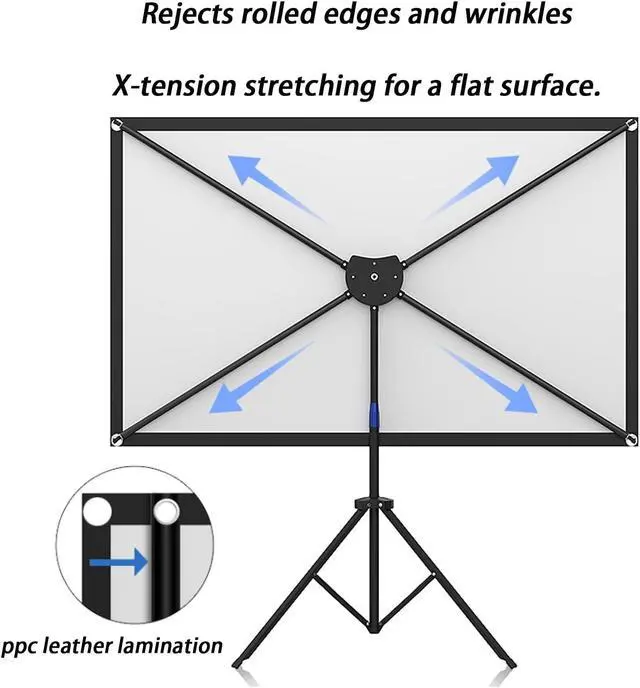 Highly flat: Refuses uneven wrinkles, X-shaped tension stretching, and stable fit of PPC leather make the screen surface flat, rejects curling/wrinkles/unevenness, and the screen can be used as a stand/hanging rack. These two installation methods can meet your needs