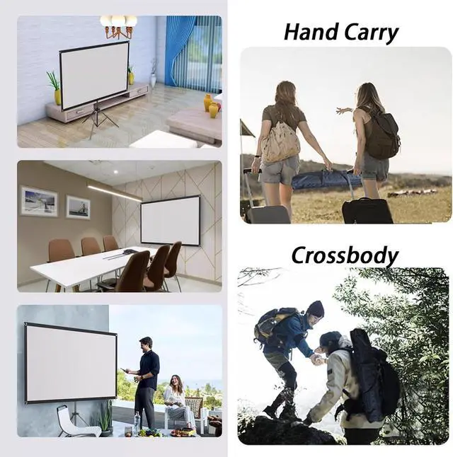 Comes with a storage bag: it does not take up space after storage, can be placed in the trunk of a car, is easy to carry, and can be carried wherever you go. It is a great theater for home travel and travel. The independent projector screen is suitable for home theater movies, education, demonstrations, lectures, offices, and classrooms. , games and other indoor activities, and can also be used outdoors.