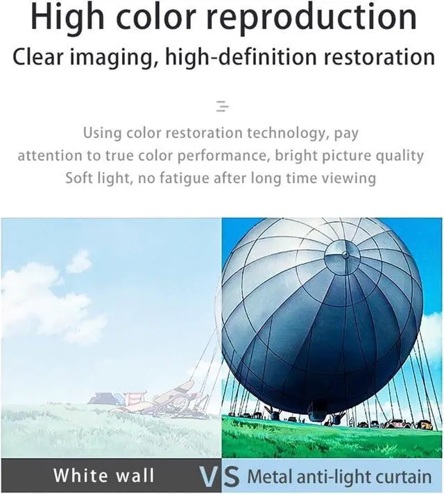 The projector screen used soft touch and stretchy thick polyester fiber material to ensure wrinkle free after folded or compressed, providing clearer images, brighter colors and no color cast.