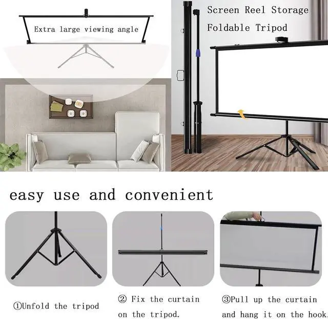 [Portable Projection Screen] The projection screen has a roll-type storage design and a foldable tripod. The screen can be taken anywhere and easily put into the trunk of the car. It can be conveniently used for family trips, camping or backyard movie nights.