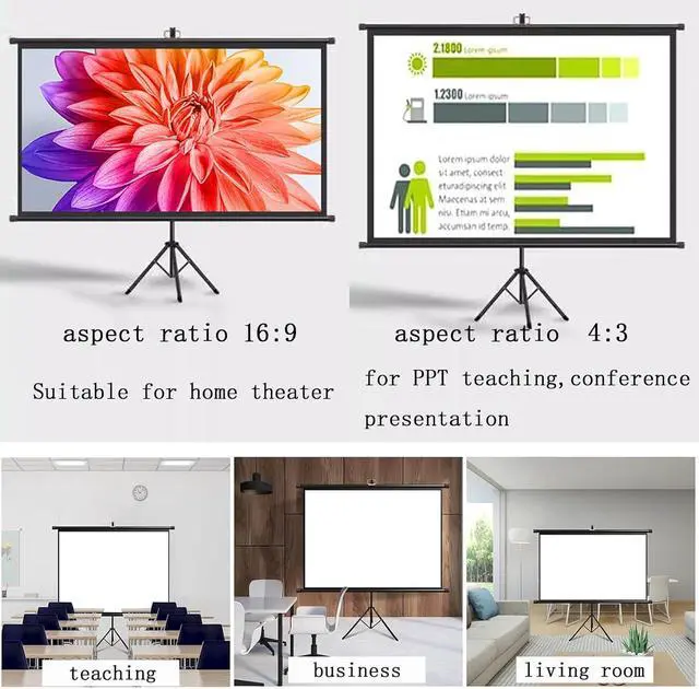 [Wide Application] The projection screen has 4:3/16:9 picture formats to choose from. The 16:9 format is suitable for home theaters, games and KTV, and the 4:3 format is suitable for business, office, school, educational PPT and other work. place.