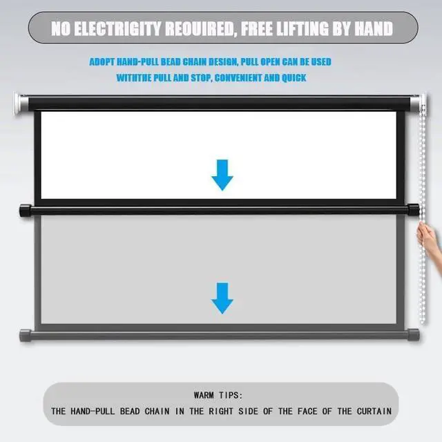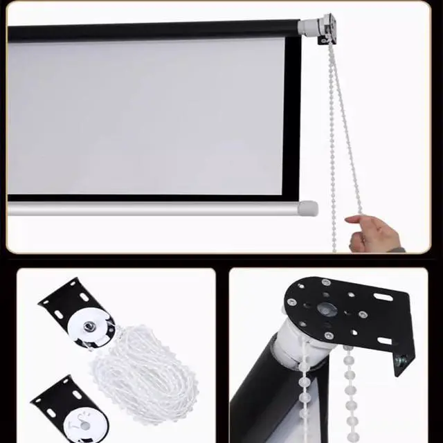 The manual projection screen is made of high quality white fiberglass material, consisting of 4 layers of projection optical coatings for true colour reproduction and light transmission resistance, bringing you and your family a high-definition visual experience