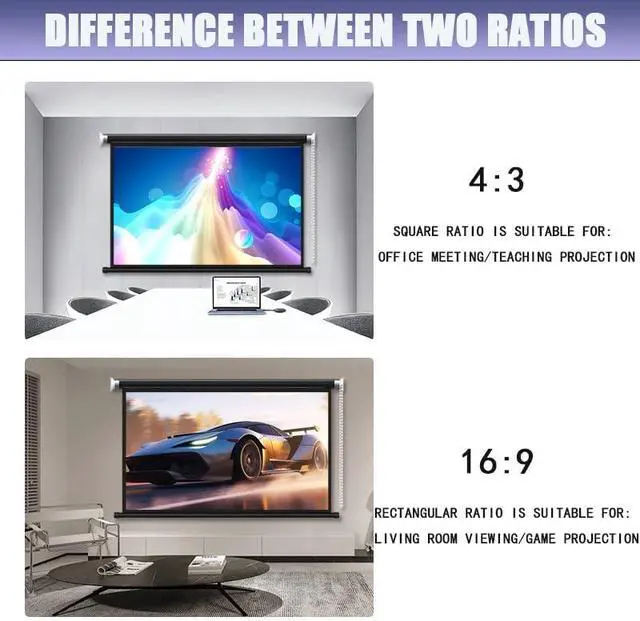 The rolling projection screen allows you to effortlessly adjust it to the desired height, with an auto-lock feature for added convenience