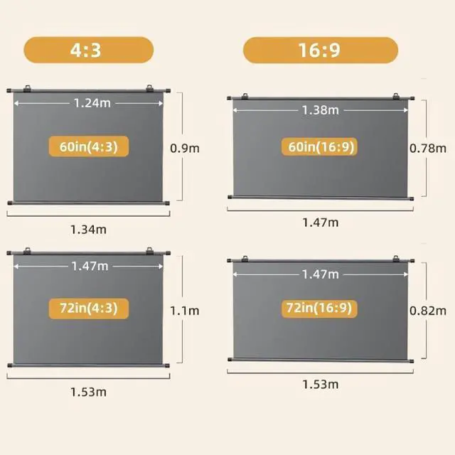 Manual Projector screen, portable HD projection screen, Movie Screen for home theater, living room, bedroom, office, classroom, easy to roll up to save space.