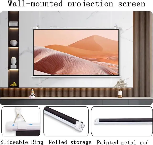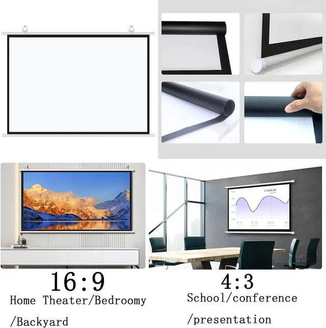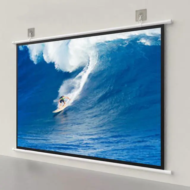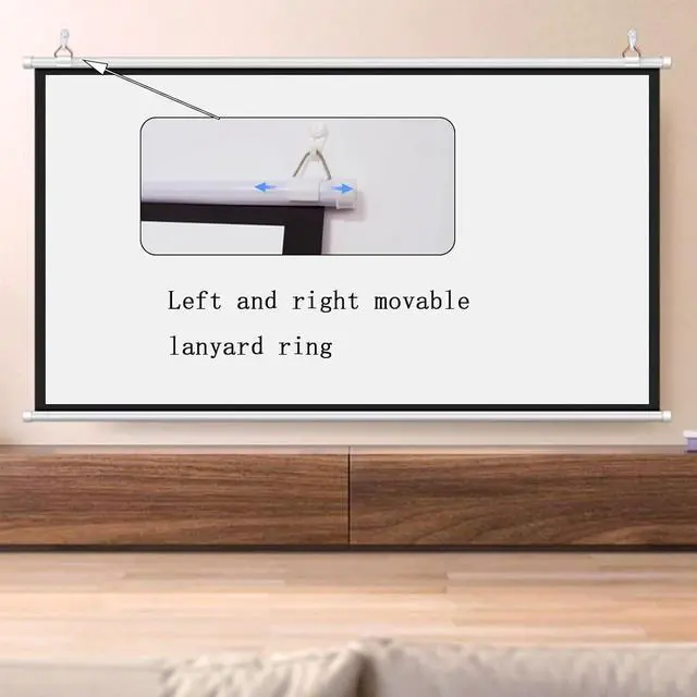 The wall-mounted projection screen is available in 4:3 and 16:9 aspect ratios, and the spacing can be freely adjusted as needed by moving the hanging ring left or right, giving you the flexibility to choose the ideal setting that suits you.