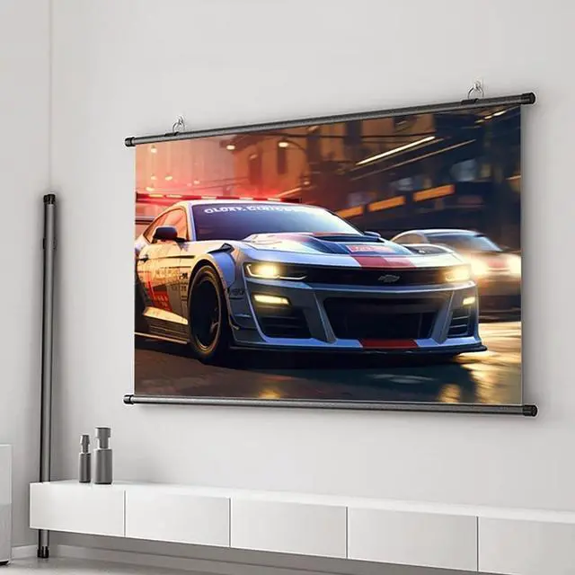 Production material: The projection screen is made of PVC polymer material curtain, adding special anti-light coating, 2.8 times brightness gain, supporting full HD, 4K and so on.
