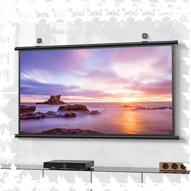 Material: The manual retractable projection screen is made of white fiberglass, with real color rendering and good anti-light transmission effect, giving you and your family a high-definition visual experience