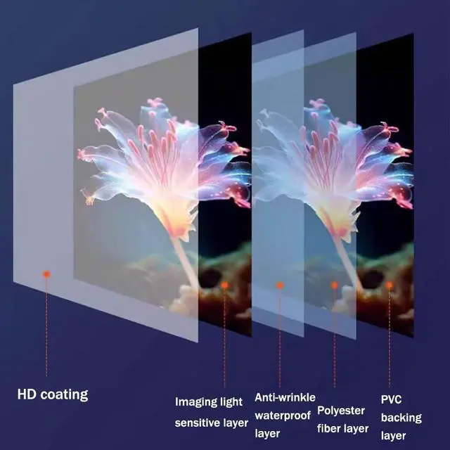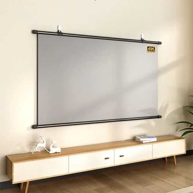 High quality material: The wall-mounted projection screen is made of PVC polymer material curtain, with special anti-light coating added to evenly diffuse the light and make the picture real.