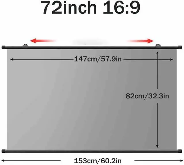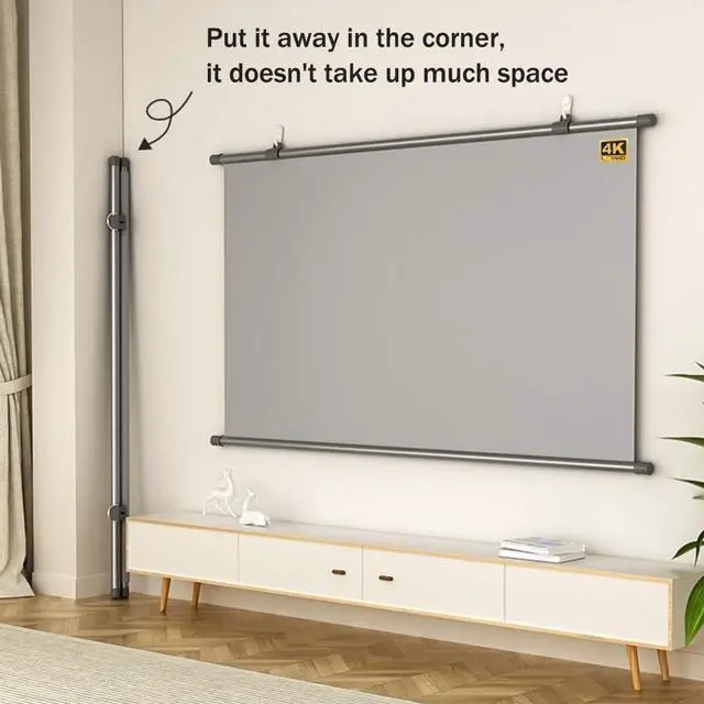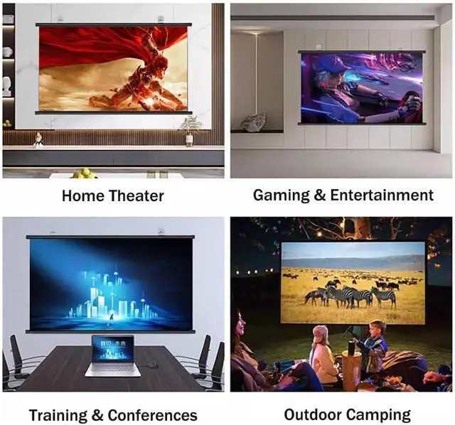 Wide range of applications: You can place the projection screen in any indoor or outdoor location for entertainment or work. For example, living room, bedroom, balcony, classroom or office.