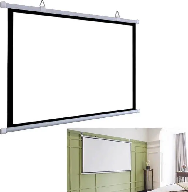 The screen has two ratios: 16:9 and 4:3. The 16:9 ratio is suitable for home theaters, games, and KTVs, and the 4:3 ratio is suitable for workplaces such as business, offices, schools, and educational PPT.