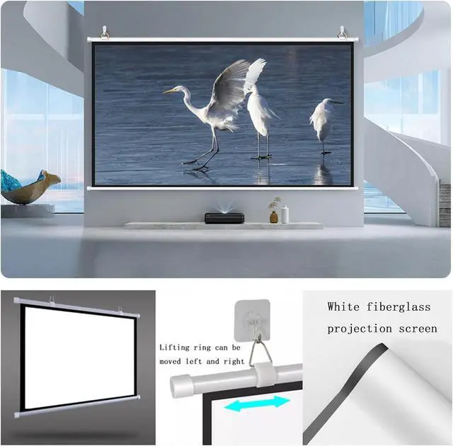 The simple projector screen is made of high-quality white fiberglass, which is foldable and anti-wrinkle. Enjoy the super-large screen theater, immersive viewing effect, picture quality, 3D effect and delicate and clear image performance.