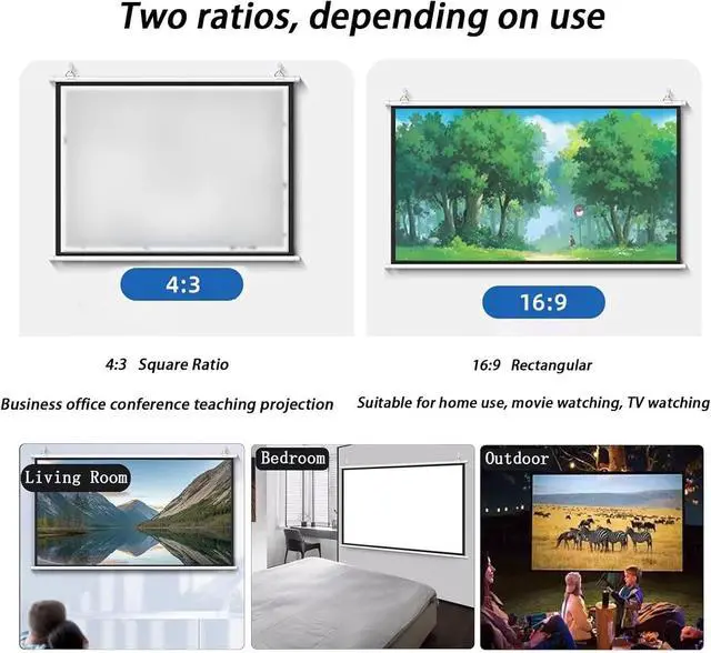 MANUAL SCREEN: This pull-down movie projection screen mounts to the ceiling/wall, so you just roll down and release smoothly to use.