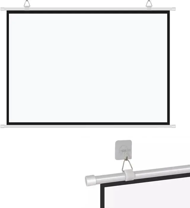 Projection screen wall-mounted installation, comes with sticky hooks for easy installation, flexible hanging rings, the hook position can be adjusted freely, and the hanging rings can be moved freely, making the installation flexible and convenient.