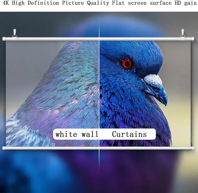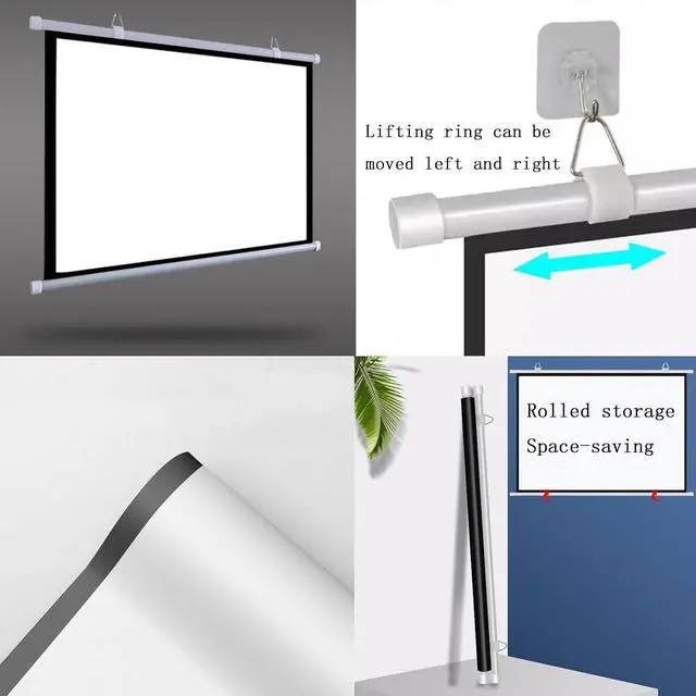 The wall-mounted projection screen can be installed on the wall with adhesive hooks, and the distance can be freely adjusted as needed by moving the hanging ring left or right, giving you the flexibility to choose the ideal setting that suits you.