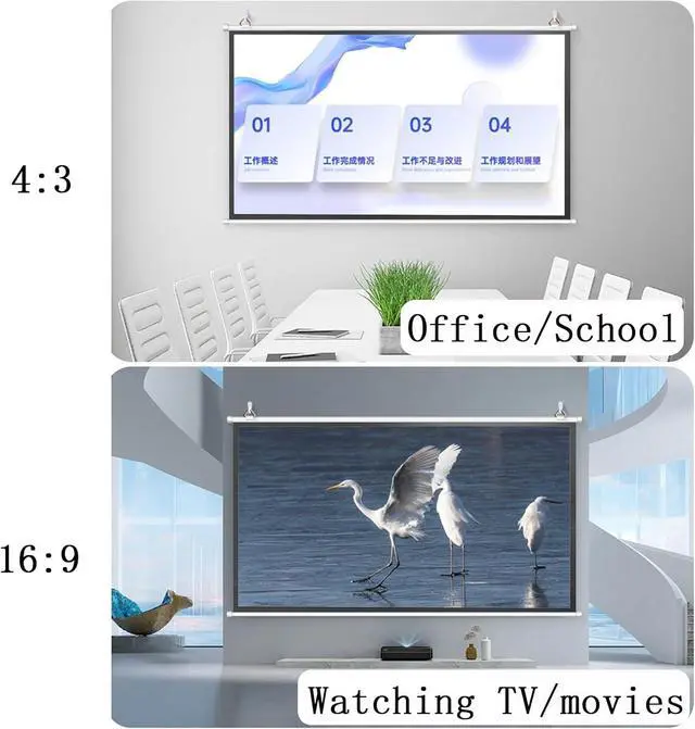 The portable projection screen is available in two image formats, 16:9 and 4:3. The roll-type storage is convenient and lightweight and can be easily rolled up, saving space and making it easy for people to carry when going out.