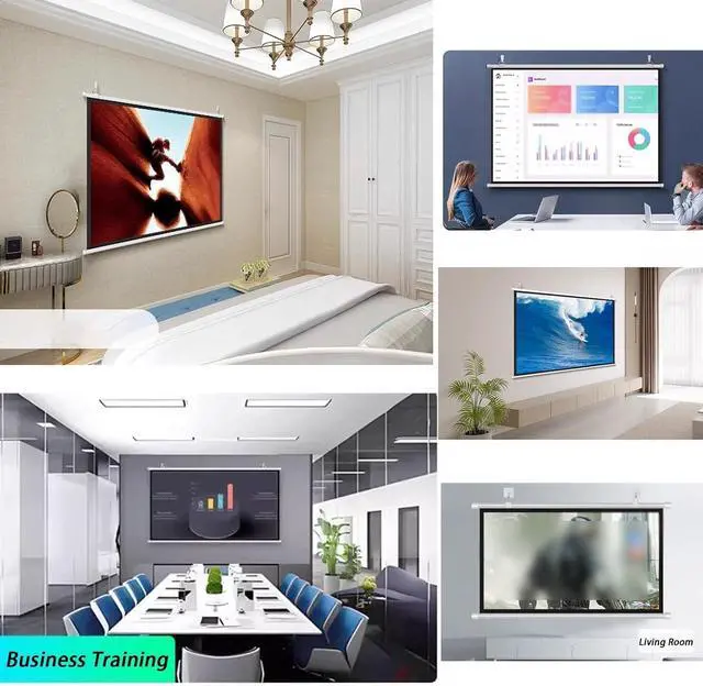 Flexible installation options: The projection screen can be installed on the wall or ceiling at will, and the hanging ring can be moved left and right, allowing you to freely adjust the distance as needed, allowing you to flexibly choose the ideal configuration that suits you. .