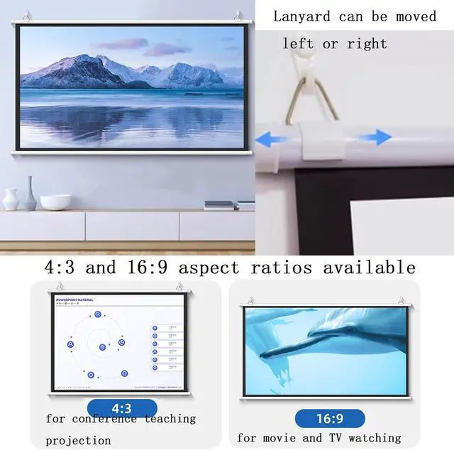 The projection screen has two screen formats, 16:9 is suitable for home theaters, playing games, KTV, and 4:3 is suitable for business offices, school teaching demonstrations, etc.