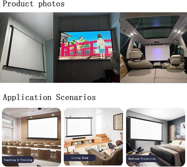 The simple projector screen is made of high-quality white fiberglass, allowing you to enjoy a super-large screen theater, immersive viewing effects, picture quality, 3D effects and delicate, clear image performance.