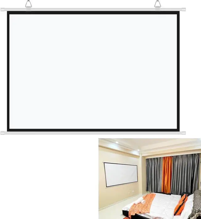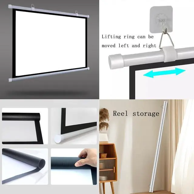 The video projection screen can be stored in a roll and put in a backpack to take wherever you want to go. This movie screen comes with all the necessary tools (adhesive hooks), making it easy to install without tools.