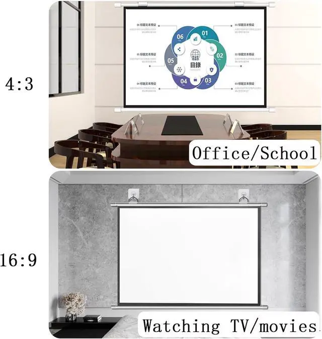 The projection screen has good picture quality and lightweight design. It is not only suitable for indoor use, such as home theaters, education, demonstrations, lectures, offices, classrooms or games, etc., but also suitable for outdoor movie nights or some important occasions (Thanksgiving, Christmas) .