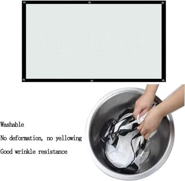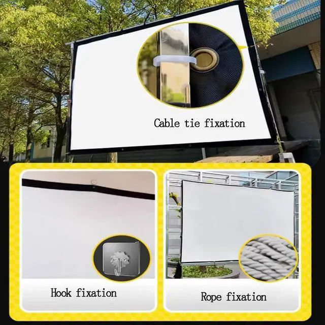 Portable design: The portable and foldable projection screen is lightweight and foldable, equipped with ropes, hooks, and storage bags. It is easy to install and has holes around for easy hanging.