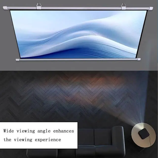 The wall-mounted projection screen can be mounted on the wall with adhesive hooks, and the spacing can be freely adjusted as needed by moving the hanging ring left or right, giving you the flexibility to choose the ideal setting for you.
