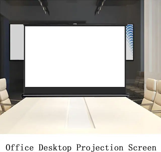 The desktop projection screen does not require installation. It adopts a "scissor" spring device. The casing is made of aluminum. It has a compact design, beautiful appearance, and a lightweight body. The bottom support feet allow the screen to stand on any type of flat ground or desktop.