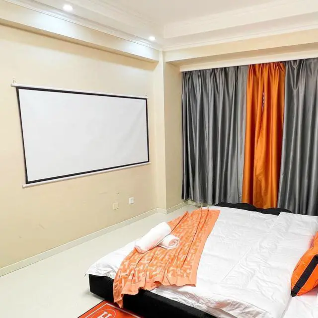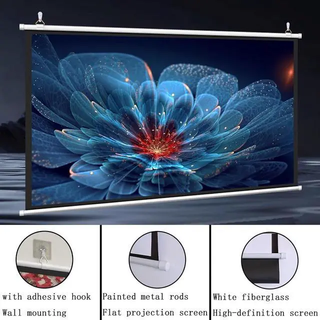 The manual pull-down projection screen is made of white fiberglass material, which has real color rendering and good anti-light transmission effect, bringing you and your family a high-definition visual experience.