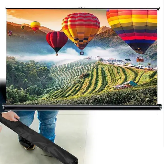 Video projector screen is designed to be placed on any flat floor surface or table! The shell of the projector screen is made of aluminum, which has a compact design and beautiful appearance, and the body is lightweight and portable.