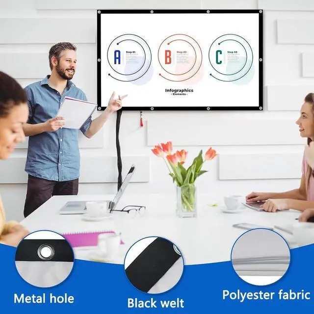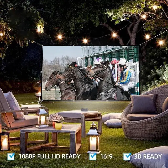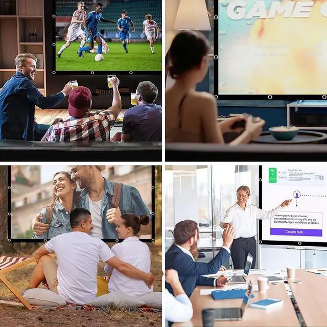 Wide application: The projector screen is used to display movies, sports games, photos, music videos, games, etc. Ideal for home theater movies, education, boardroom presentations, public displays, outdoor movies, picnics, or hosting events or parties, etc., to make your life more interesting